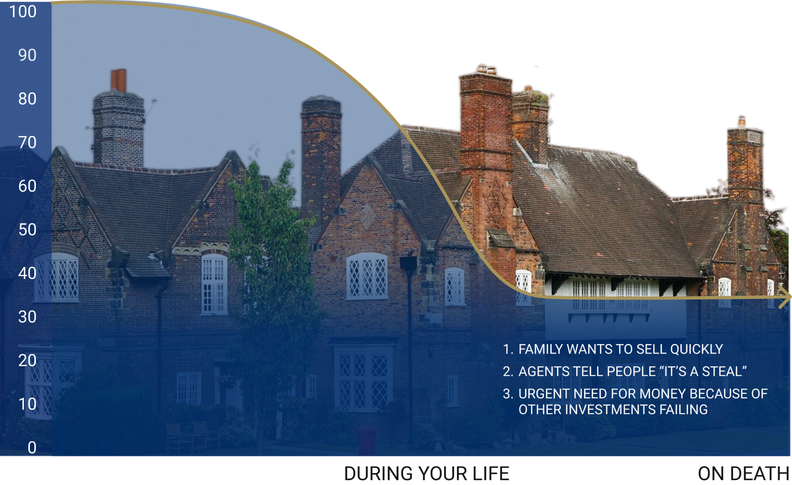 Our research indicates that your family house sold by your “Estate” can fall by over “30%” within days
